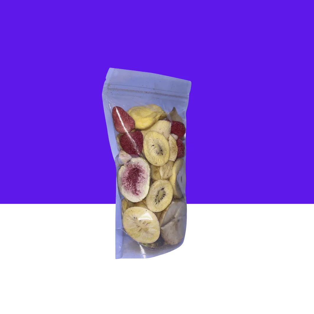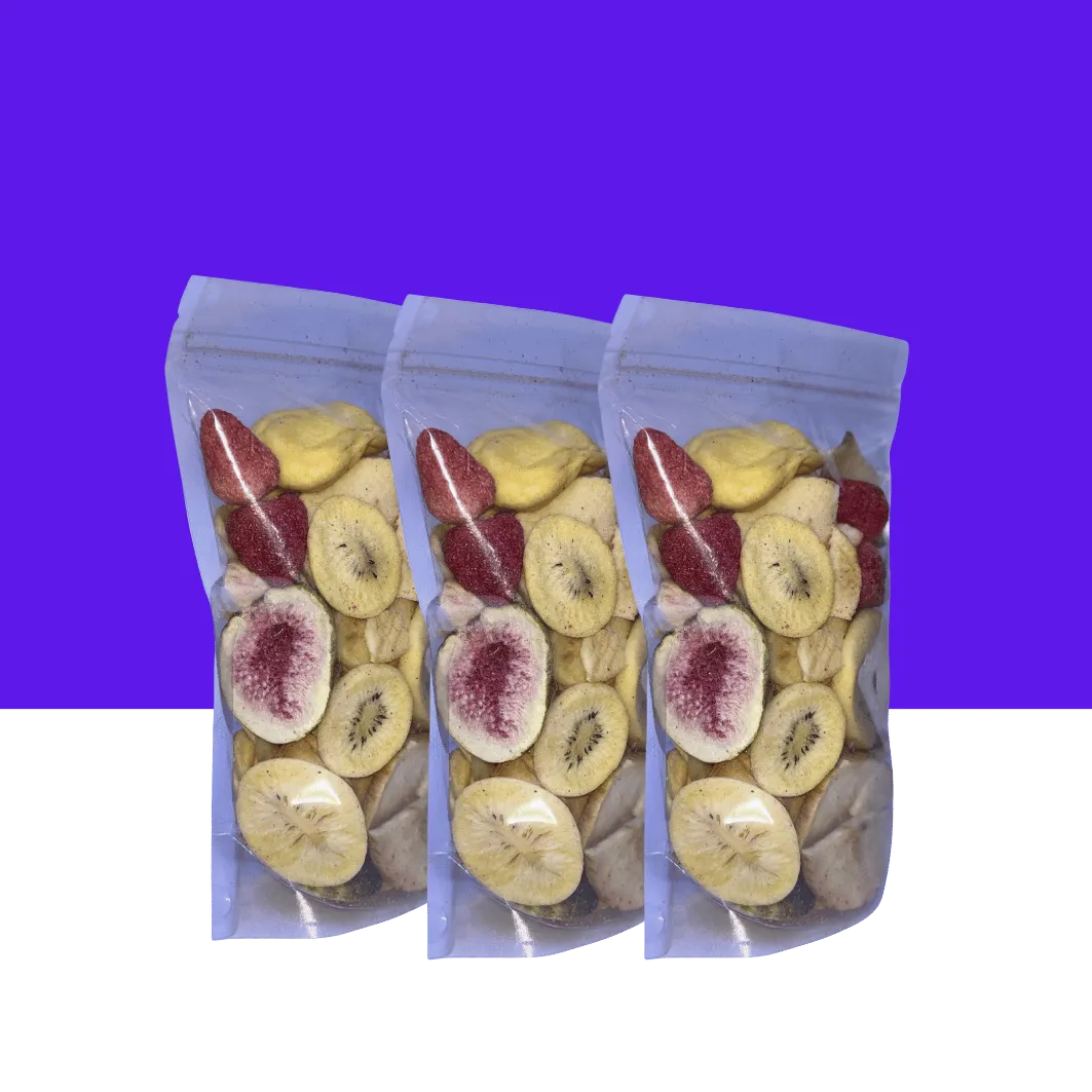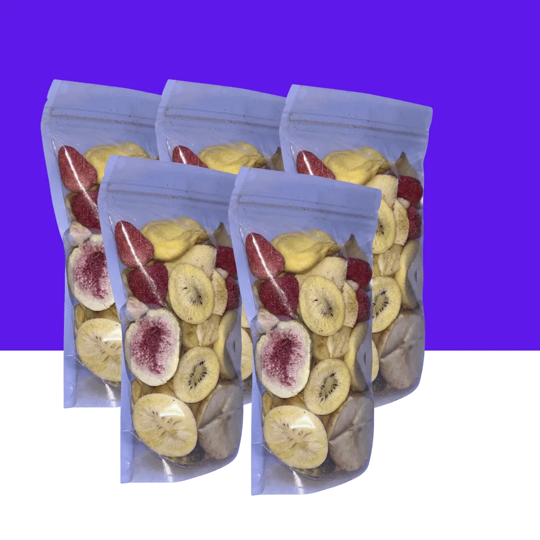 مجموعة تضم مانجا، فراولة، أناناس، توت وموز مجففة بالتبريد